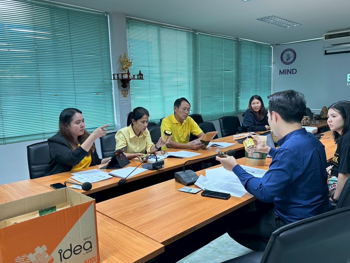 นายอภิรักษ์ อ่ำสุริยะ อุตสาหกรรมจังหวัดจันทบุรี มอบหมายให้คณะกรรมการตรวจรับพัสดุฯ ประกอบด้วย นางสาวธิดารัตน์ นามณีย์ นักวิชาการอุตสาหกรรมชำนาญการ นางสาวรัชนู ราชรี นักวิชาการอุตสาหกรรม นายไพรวัลย์ พงษ์กำเนิด พนักงานธุรการ พร้อมด้วยเจ้าหน้าที่ นางศิริธนญาพร ศรีประสงค์ นักวิชาการมาตรฐาน และนางสาวพัณณิตา พวงศรี เจ้าหน้าที่บริหารงานทั่วไป เข้าร่วมประชุมคณะกรรมการฯ ครั้งที่ 1/2568 เพื่อหารือการจัดกิจกรรม จัดงานแสดงผลิตภัณฑ์เพื่อสร้างความร่วมมือทางธุรกิจระหว่างผู้ประกอบการกับผู้ซื้อกลุ่มเป้าหมายที่มีศักยภาพ และเผยแพร่ ประชาสัมพันธ์โครงการตามแนวคิด “Eco Life Eco Friendly อุตสาหกรรมไทยก้าวไกลอย่างยั่งยืน” ภายใต้ค่าใช้จ่ายในการพัฒนาวัสดุที่ไม่ใช้แล้วภาคอุตสาหกรรมภาคการเกษตรแปรรูปสู่ผลิตภัณฑ์ชุมชน ปีงบประมาณ พ.ศ. 2568 ร่วมกับผู้รับจ้าง (บริษัท จิ๊กซอร์ จำกัด) ณ ห้องประชุมสำนักงานอุตสาหกรรมจังหวัดจันทบุรี