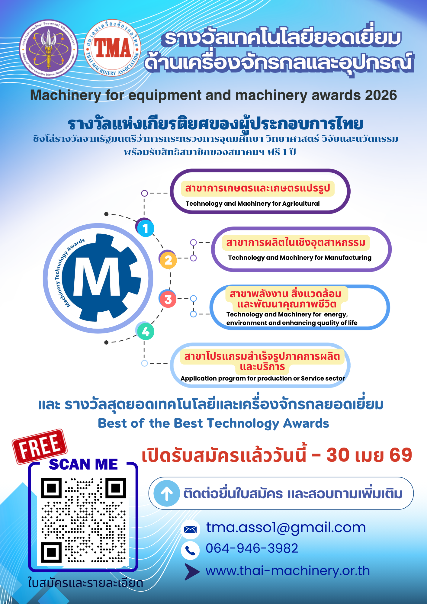 "โครงการประกวดรางวัลเทคโนโลยียอดเยี่ยมด้านเครื่องจักรกลและอุปกรณ์ ประจำปีงบประมาณ พ.ศ. 2569"